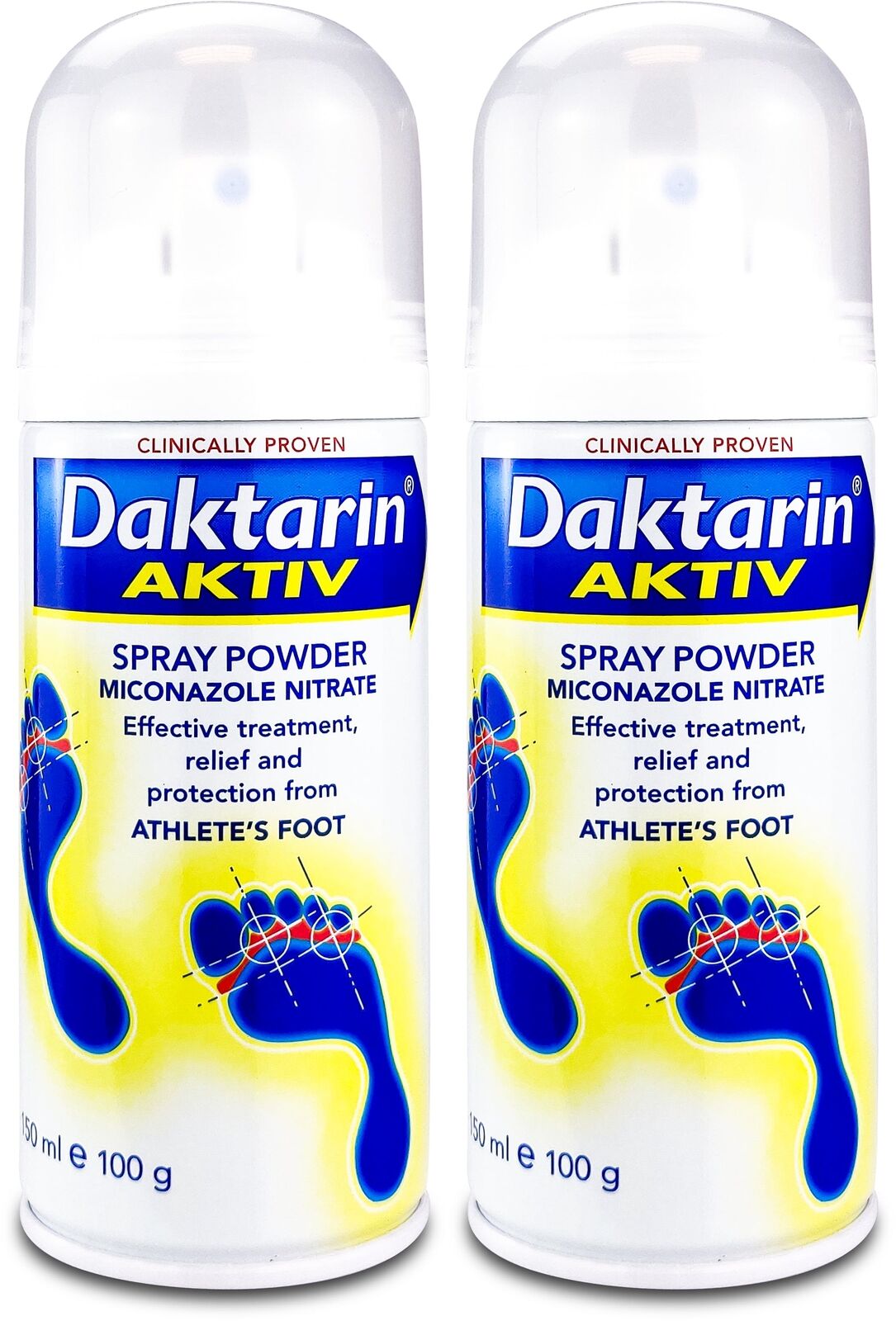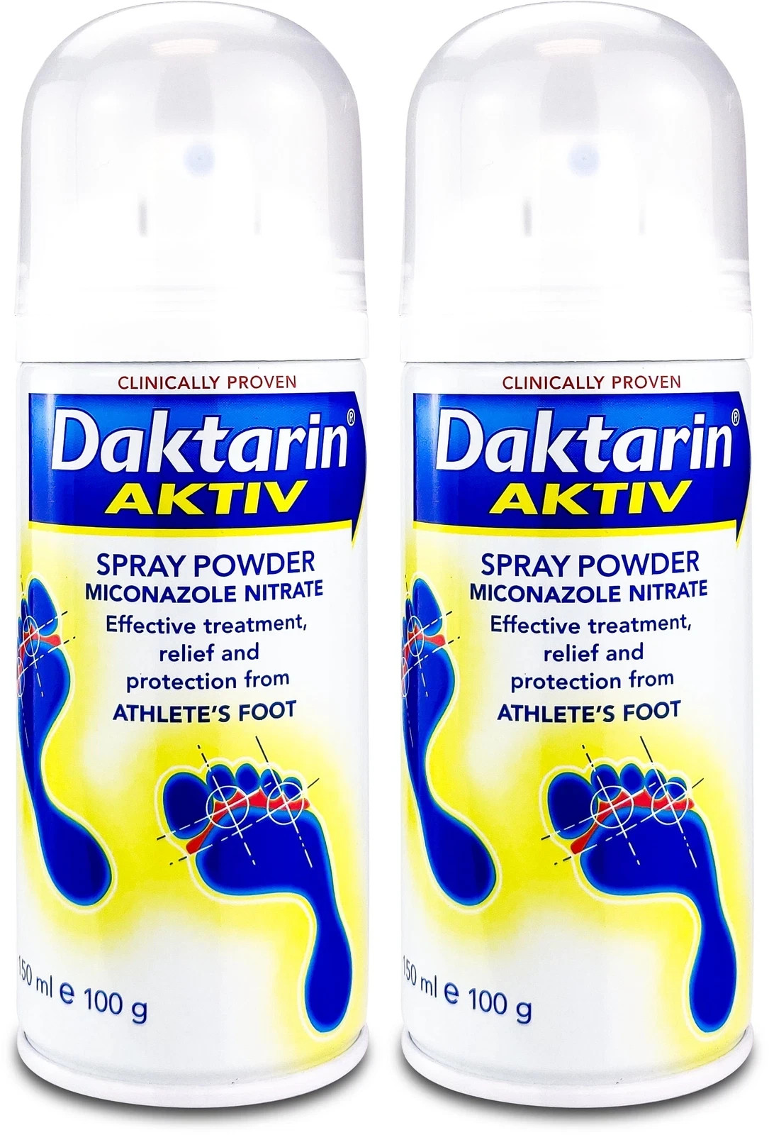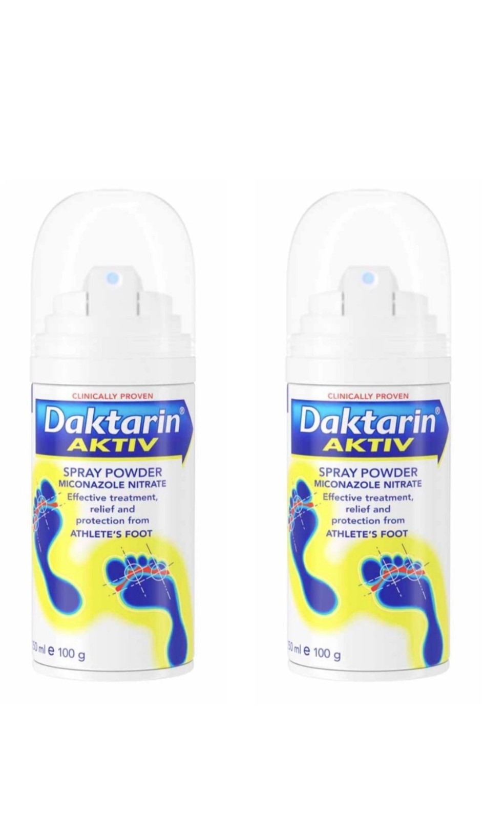 2x Daktarin Aktiv Spray Powder for Athlete's Foot 100g - Effective Treatment