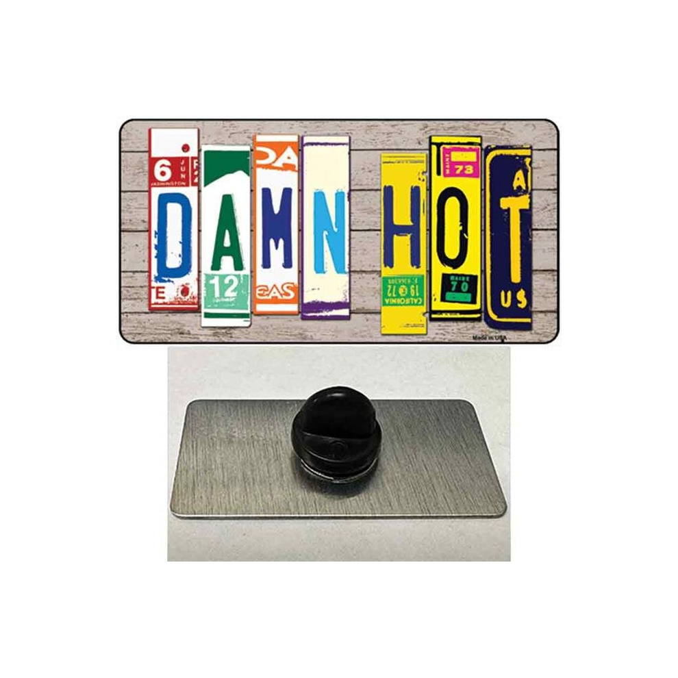 Smart Blonde PIN-LP-7942 1.5 x 0.75 in. Damn Hot Wood License Plate Art Novelty Rectangle Metal Hat Pin
