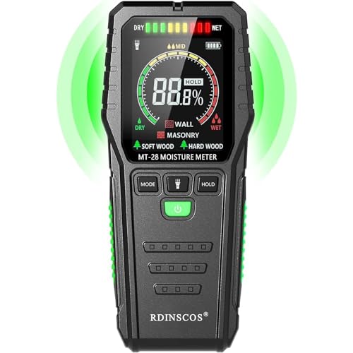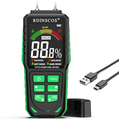 RDINSCOS Moisture Meter Damp Meter for Wood Moisture Detector with Color Display Rechargeable Moisture Tester for Firewood,Wall,Building Material