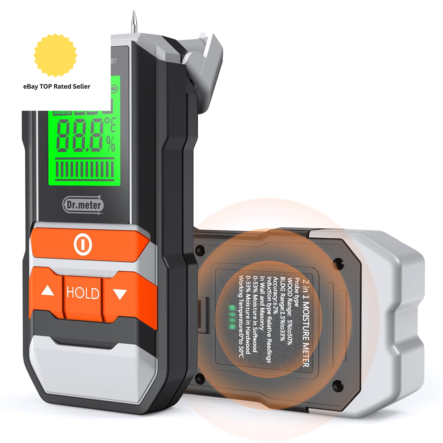 Dr.meter Pinless Moisture Meters, Damp Meter for Walls with Backlit LCD Screen