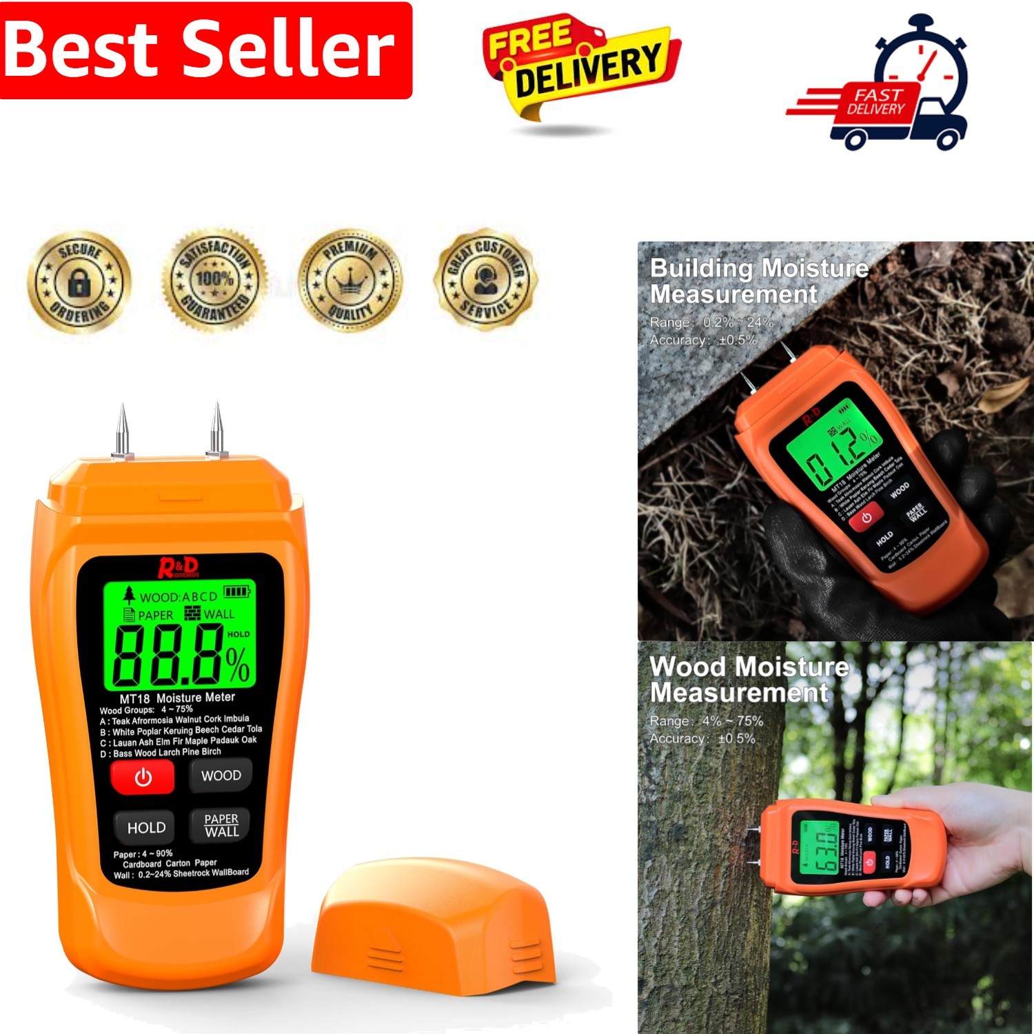 RDINSCOS Wood Moisture Meter Damp Meter for Firewood Wall Damp Tester (MT19B)