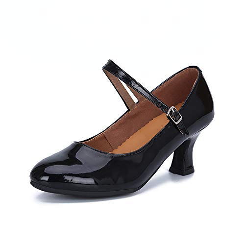 MNSSRN Patent Leather Jazz Dance Shoes Ladies Ballroom Closed Feet Dance Modern Tango Waltz Social Dance Dance Shoes, Black, 25.5 cm