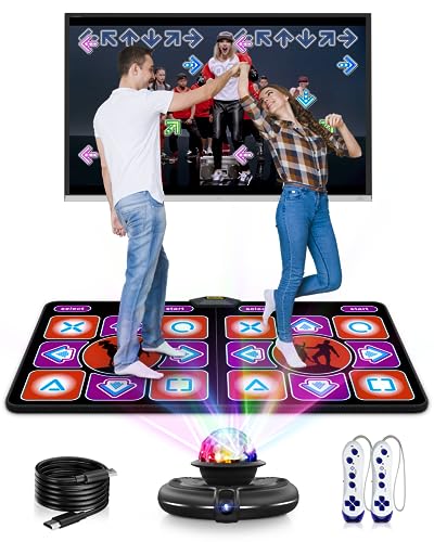 Dance Mat, Light Up Dance Pad, Double User Dance Floor Mat with Wireless Handle, Musical Electronic Dance Mats, 63 Games Dancing Pad for TV PC, Kid & Adult Dancing Mat, Foldable