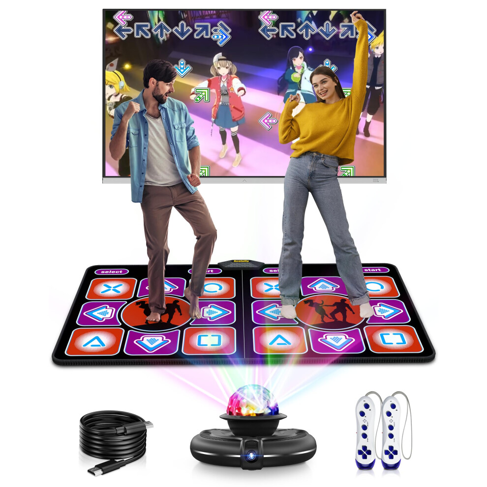 Dance Mat Game for TV/PC - Motion Sensing, Wireless Controllers, Non-Slip Electronic Dancing Carpet, Double User Compatibility