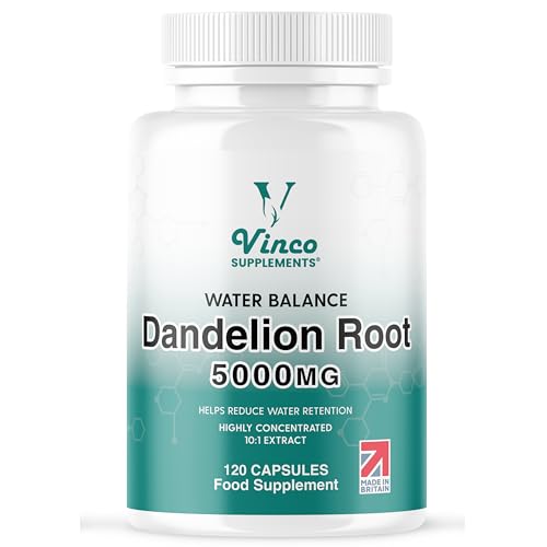 Vinco Dandelion Root Capsules 5000mg - 120 Vegan Capsules (4-Month Supply) - High Strength Herbal Supplement for Bloating & Detox - Water Retention Tablets - Natural Water Balance Support