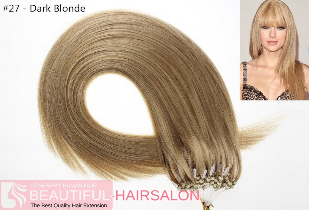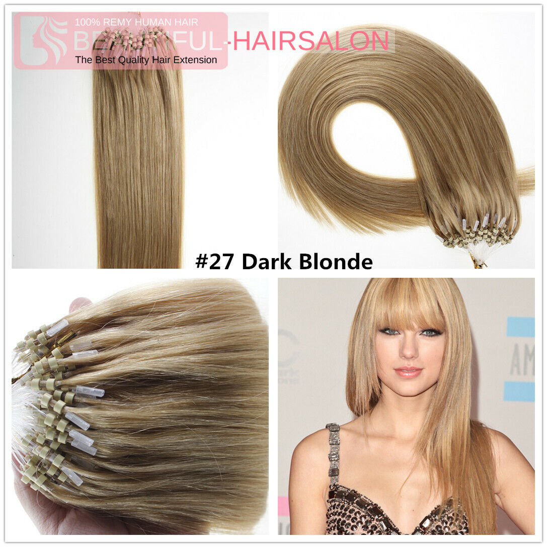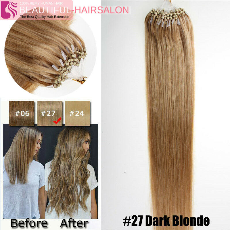 8A 14" 0.8g Easy Loop Micro Ring Bead Human Hair Extensions Dark Blonde #27 50S