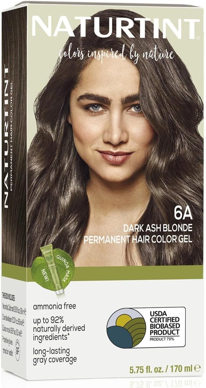 Naturtint Permanent Hair Colour Gel 6A Dark Ash Blonde, Plant Enriched, Biobased, Ammonia Free, Long Lasting Grey Coverage and Radiant Colour, Nourishment and Protection