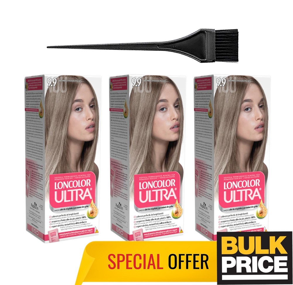 Loncolor Ultra 9.9 Dark Ash Blonde Salon Quality Hair Color Cream Bulk 3-Pack