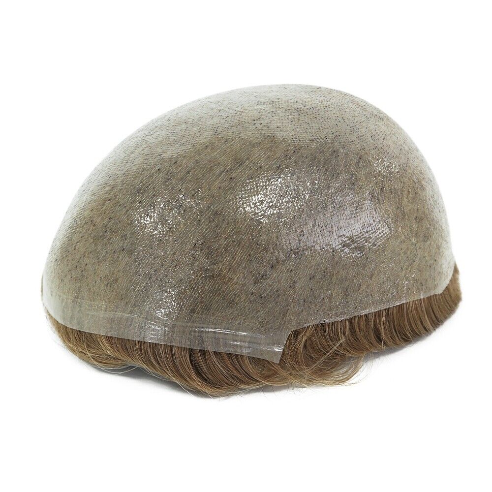 Mens Hair Replacement System Toupee Unit Thin Skin BIO Dark Blonde Hairpiece #18
