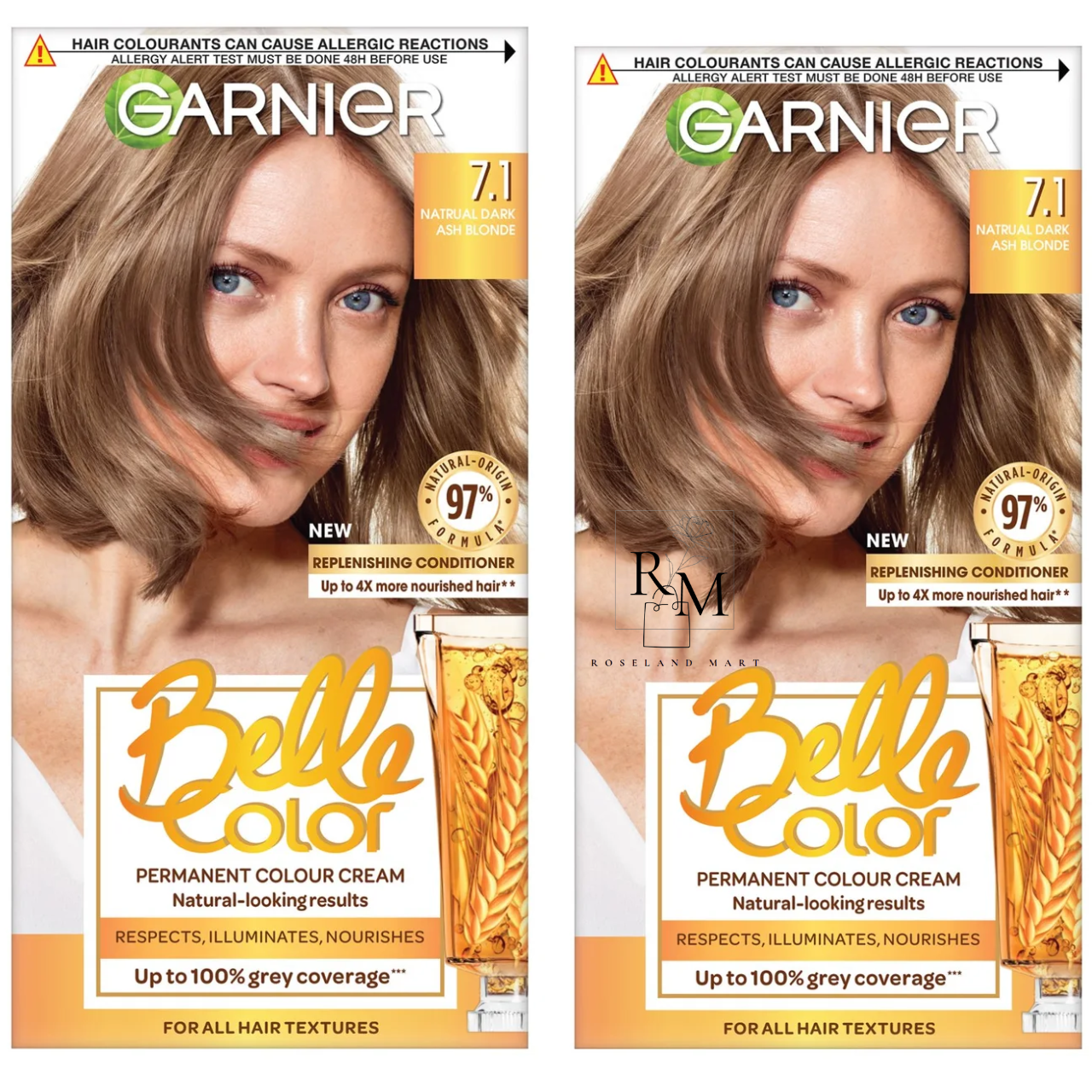 2 x Garnier Belle Color 7.1 Natural Dark Ash Blonde Permanent Hair Colour Dye