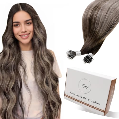 YoungSee U Tip Hair Extensions Human Hair Ombre Dark Brown Mixed Ash Blonde K Tip Hair Extensions Ombre Hot Fusion Hair 16In 1G/S 50G Long Lasting