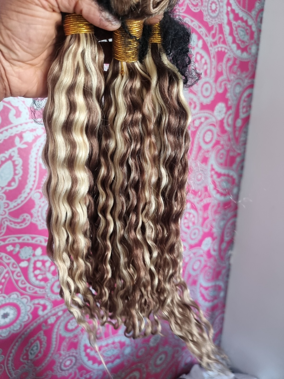 ASH BLONDE 8/613# PIANO BRAZILIAN HUMAN HAIR BUNDLE WATER WAVE 18+18+18INCH 300g