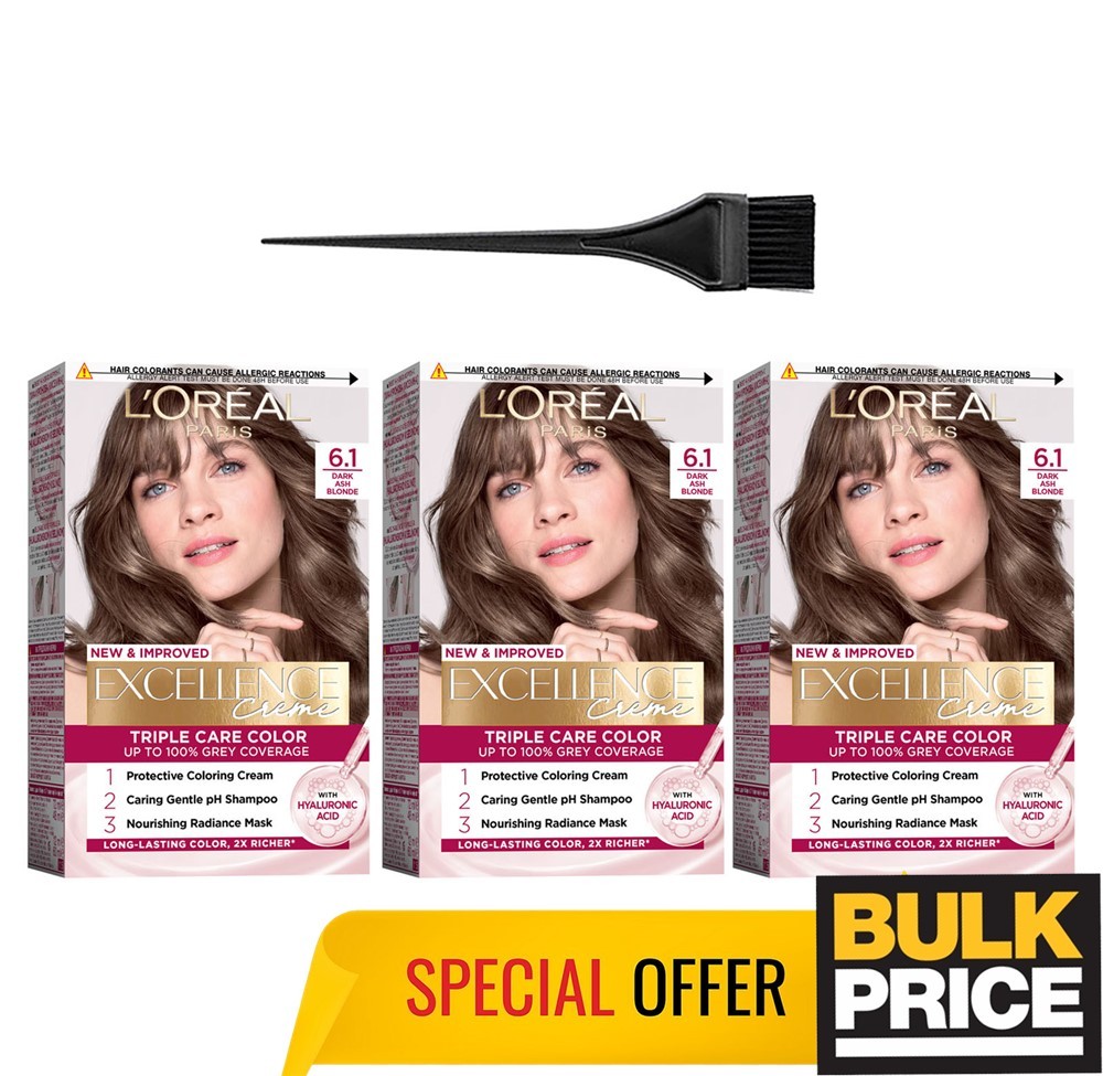 L'Oréal Paris Excellence Creme 6.1 Dark Ash Blonde Hair Color 3-Pack