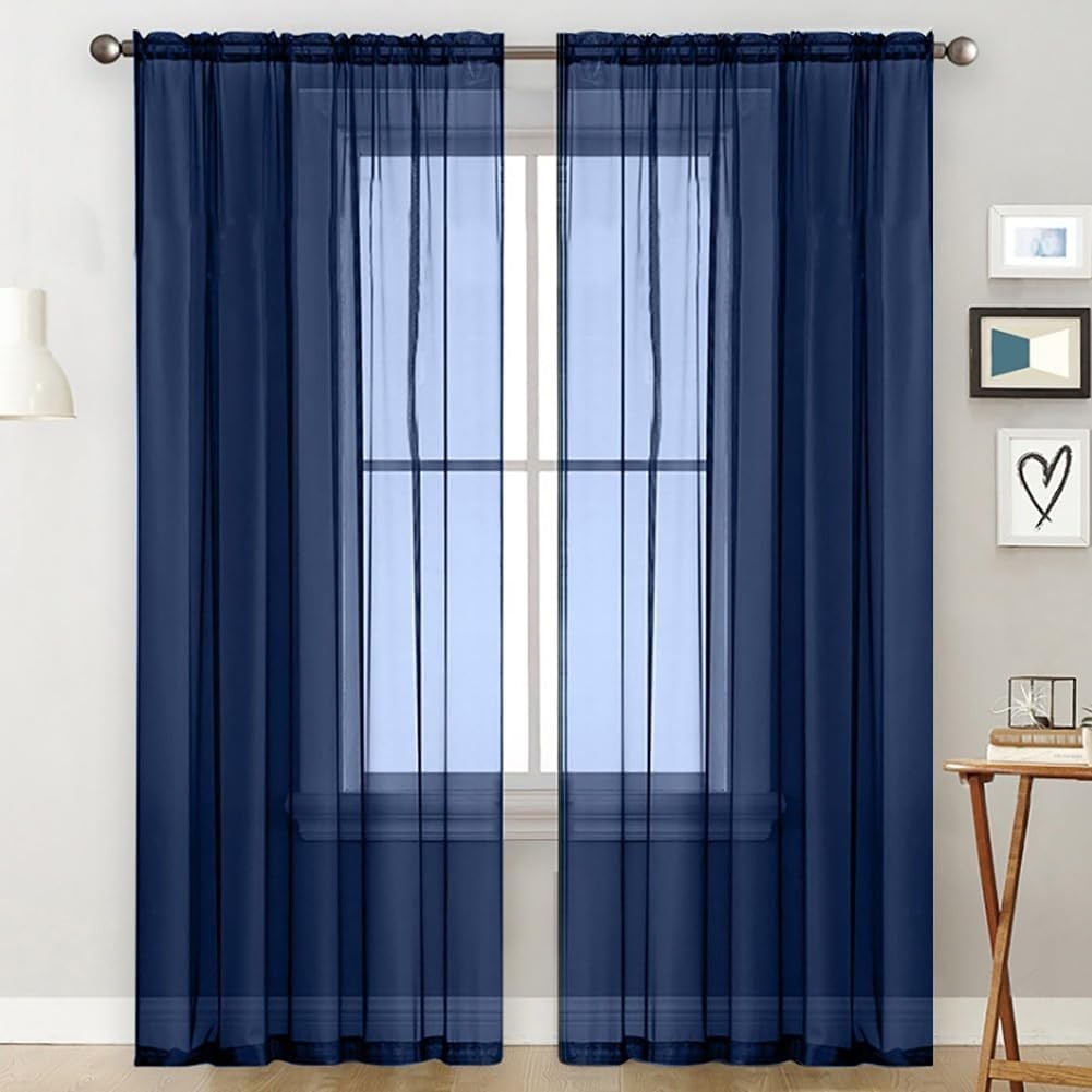Dark Blue Sheer Curtains 100*130cm Voile Window Panels for Living Room