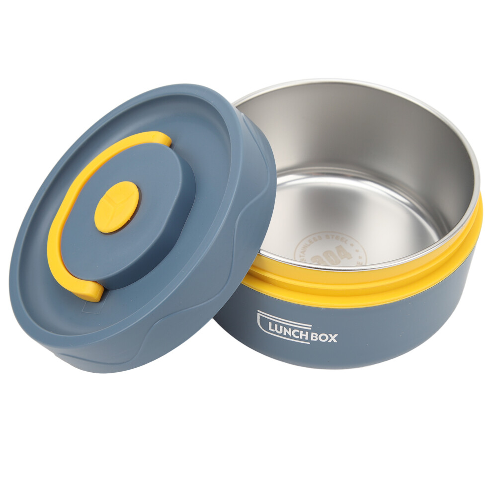 (As show, One size) Thermal Cooking Pot 420ml 304 Stainless Steel Double Layer Portable Round Shape Thermal Lunch Container Dark Blue Microwave Type