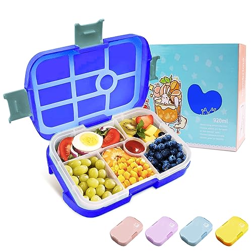 Homtibrm Bento Lunch Box, 920ML Kids Lunch Box with 6 Compartments Snack Salad Box Food Container for Childrens Girls Boys Adults Work School, Microwave Freezer & Dishwasher Safe (Dark Blue)