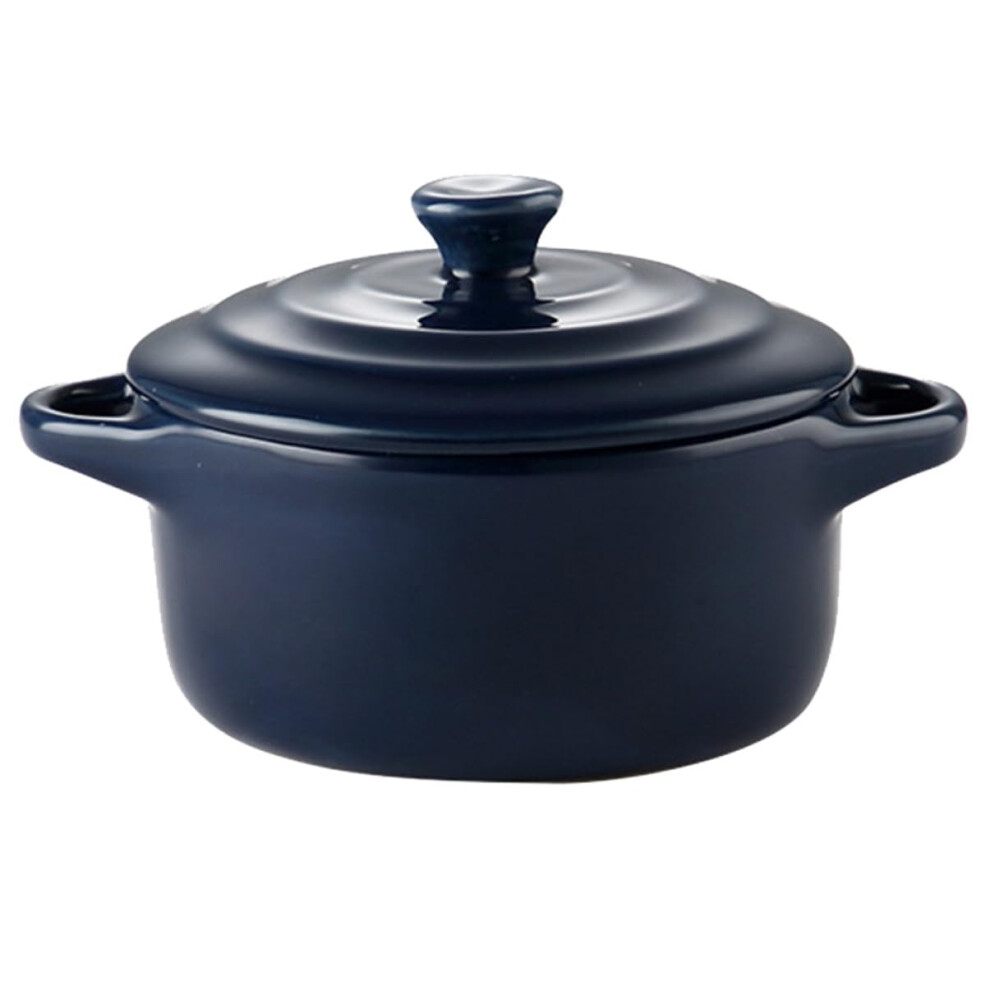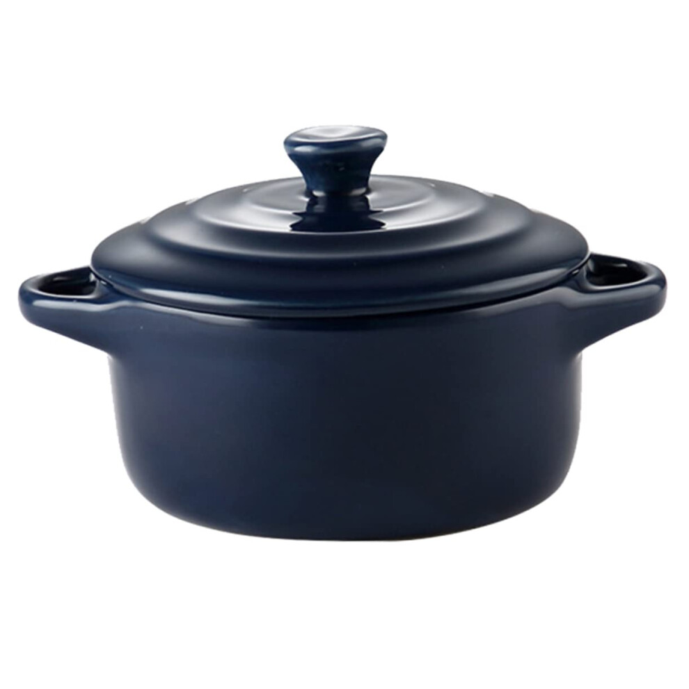 Ceramic Double Ear Bowl Mini Glazed Ceramic Baking Bowl With Lid Microwave Safe Dark Blue