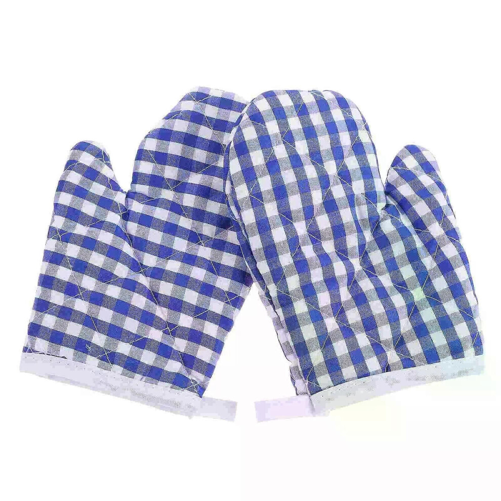 (Dark Blue) 2 Pcs Microwave Gloves Kids Cooking Oven Mitts Child Baking Mat Towel Anti Scalding Polyester