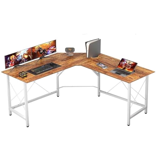 Gr8 Home Wooden L Shape Computer Desk Home Office Workstation Corner PC Gaming Laptop Work Table (Dark Teak White)