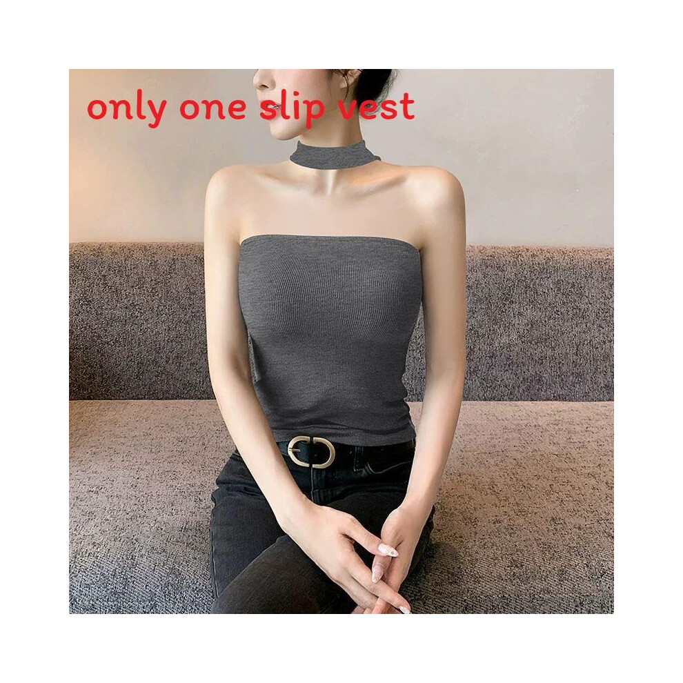 (Dark Gray) Lingerie Short Tank Top Seamless Camisole Crop Vest Sleeveless Ladies