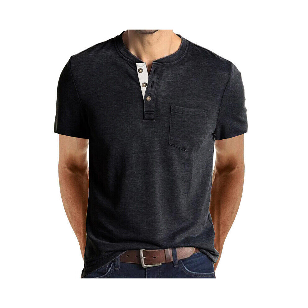 (Dark Gray, S) Mens Short Sleeve V Neck T Shirt Tops Casual Baggy Button Henley Shirt Tunic Tee