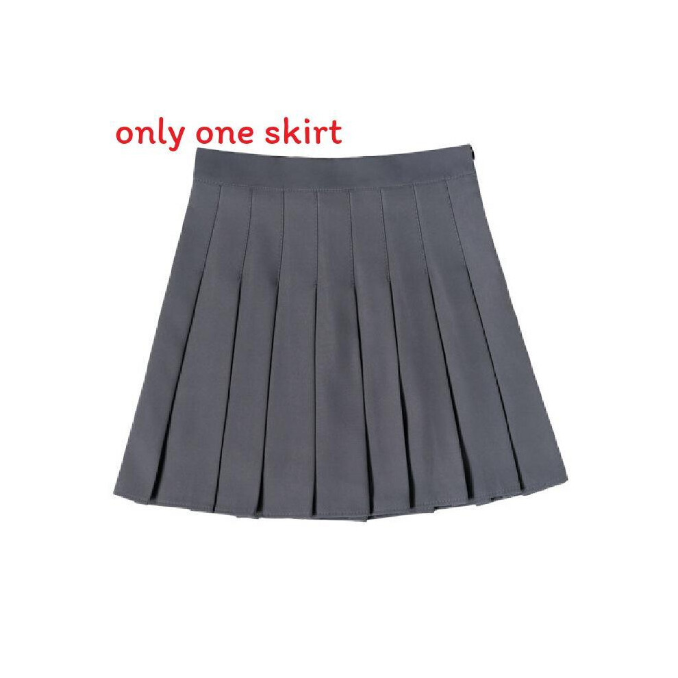 (Gray Dark, XS) Short Pleated Skirt For Women With Zipper Button Closure Summer Casual Style
