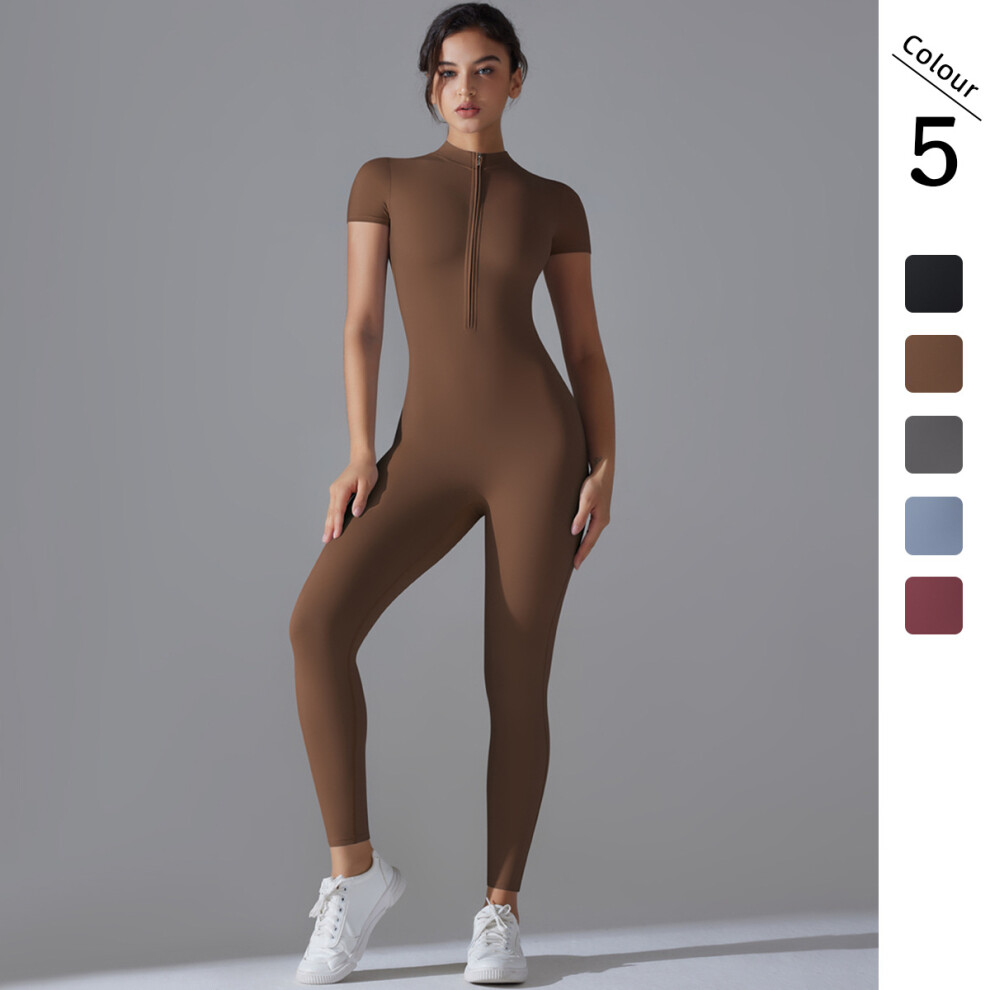 (Shorts jumpsuit-dark gray, S) Zipper short-sleeved shorts yoga jumpsuit for women dance fitness tight sports jumpsuit
