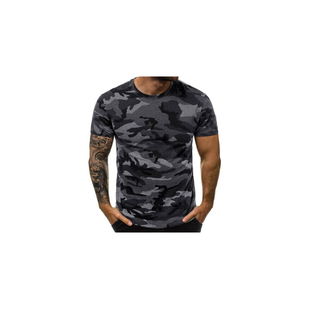 (Dark Gray, L) Mens Short Sleeve Camouflage T Shirt Tops Casual Camo Slim Fit Muscle Gym Tunic