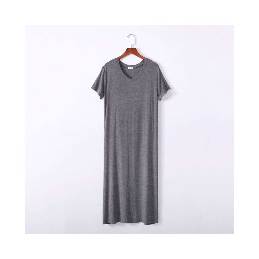 (Dark Gray XXL) Pleated Short Sleeve V Neck Sleepwear Dress Wine Red M