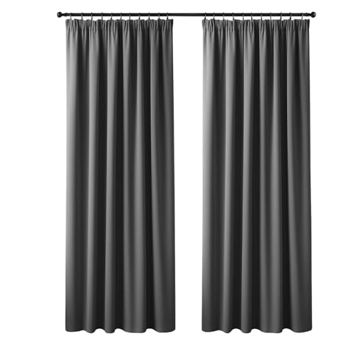 Deconovo Solid Pencil Pleat Curtains Thermal Insulated Tape Top Blackout Curtains for Bedroom 46 x 72 Dark Grey 2 Panels