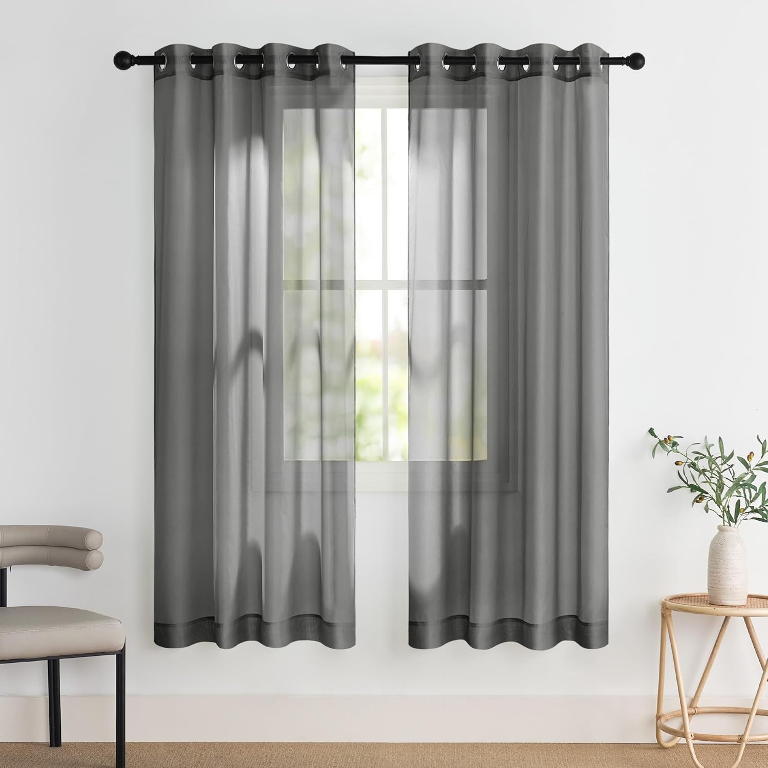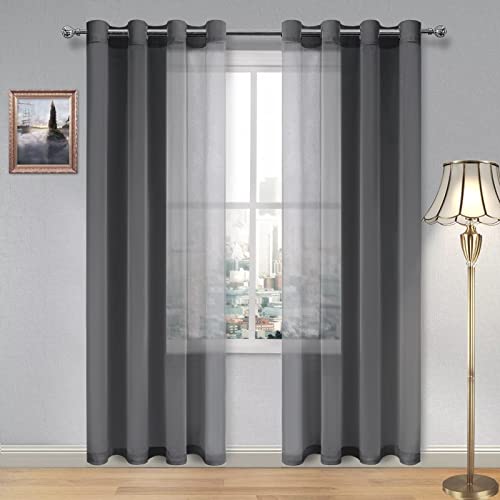 DWCN Dark Grey Sheer Curtains with Tiebacks Semi Transparent Voile Grommet Curt