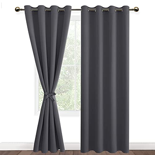 DWCN Dark Grey Blackout Curtains with Tiebacks for Bedroom Thermal Insulated Solid Eyelet Curtains for Living Room,2 Panels,55" Wide x 79" Drop