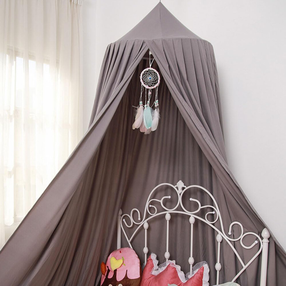 Bed Canopy Round Dome Mosquito Net For Kids, Dark Grey Curtains For Girls And Boys, Reading Corner Nursery Crib Decor