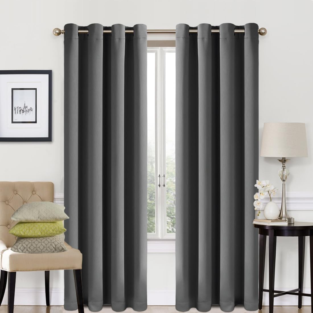 Dark Grey Blackout Curtains 52x84 Set of 2 Thermal Insulated Light Blocking Panels for Bedroom and Living Room