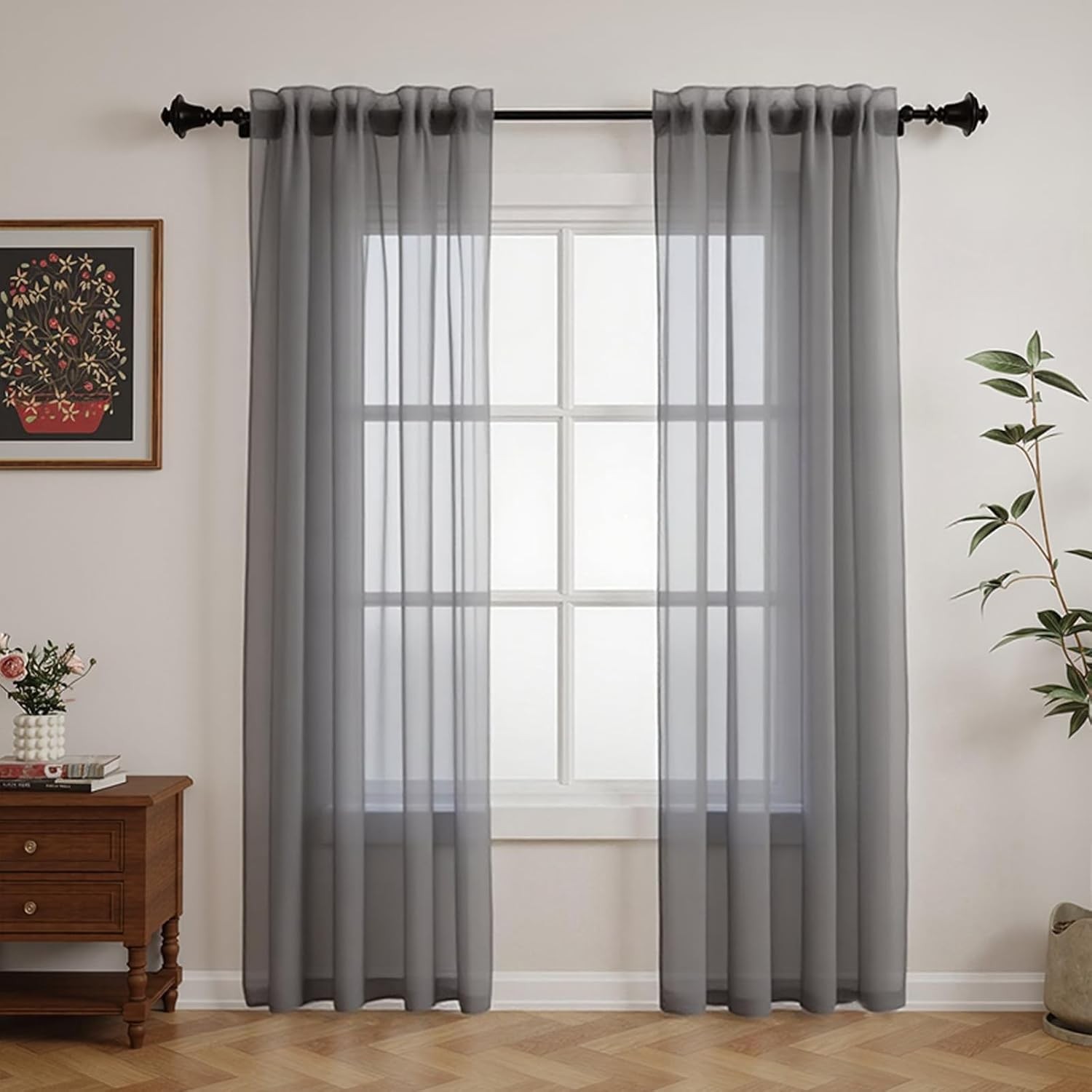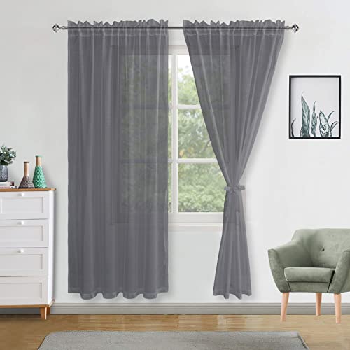 DWCN Dark Grey Sheer Curtains with Tiebacks Semi Transparent Voile Rod Pocket C