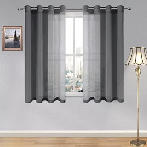 GFCC Voile Curtains, 45 Drop 2 Panels Dark Gray Net Curtains for Windows Rod Po