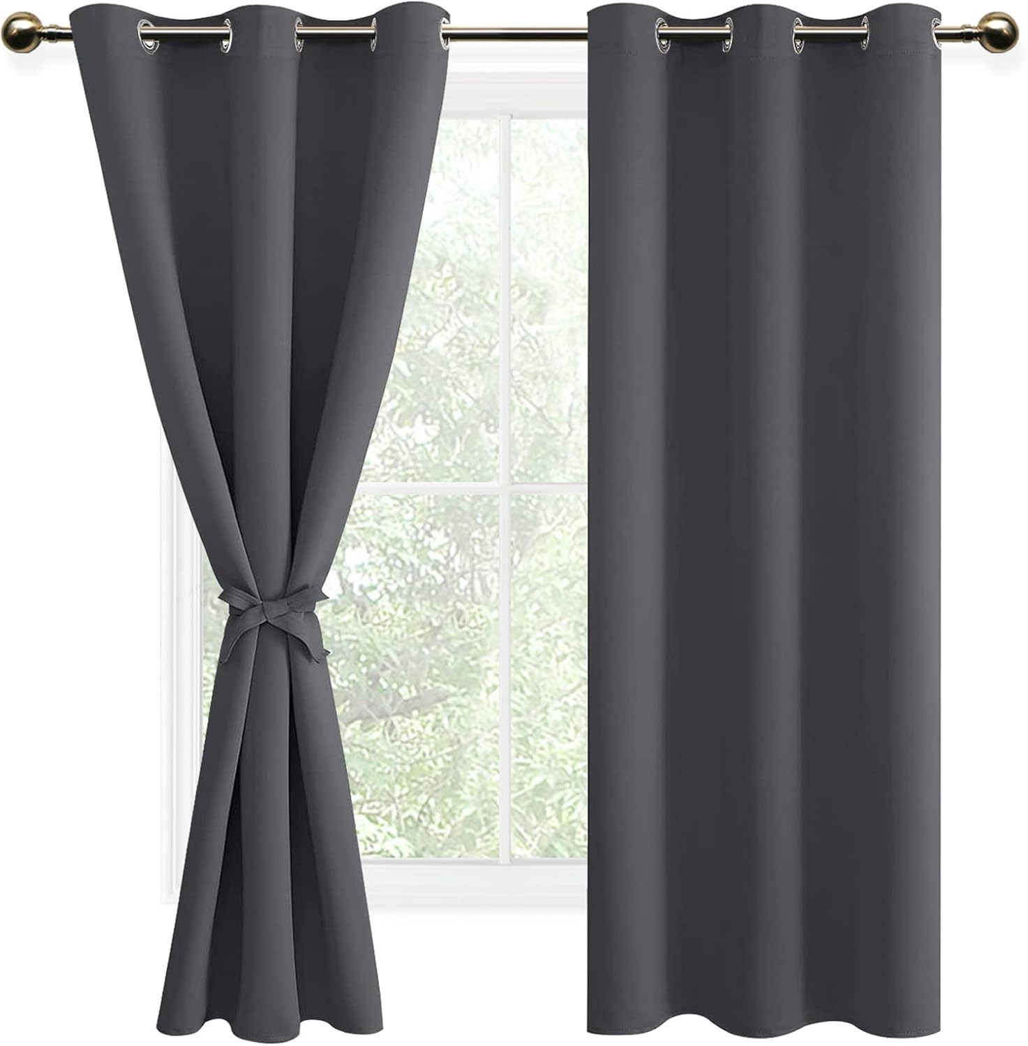 DWCN Dark Grey Blackout Curtains with Tiebacks for Bedroom Thermal Insulated So