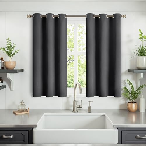 YoungsTex Dark Grey Blackout Curtains 40 Inch Length for Kitchen Bathroom Window - Thermal Insulated with Grommet Blackout Half Window Drapes for Bedroom, 2 Panels, 34 x 40 Inch