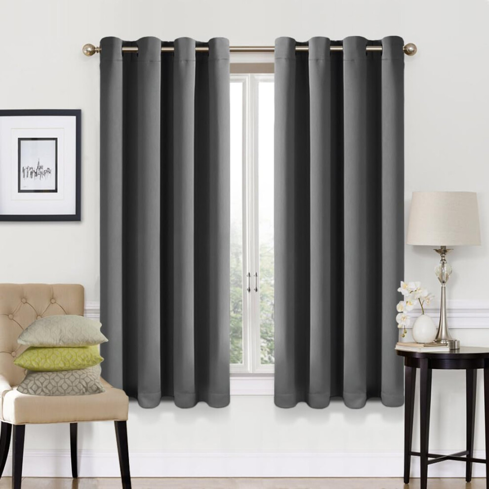 EASELAND Dark Grey Blackout Curtains 46x72 Inch, Thermal Insulated Room Darkening Eyelet Blackout Curtains for Bedroom Living Room Kitchen Nursery, 2 Panels