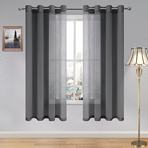 DWCN Dark Grey Sheer Curtains W56 x L90 Inch Rod Pocket Voile Curtains Semi Tra