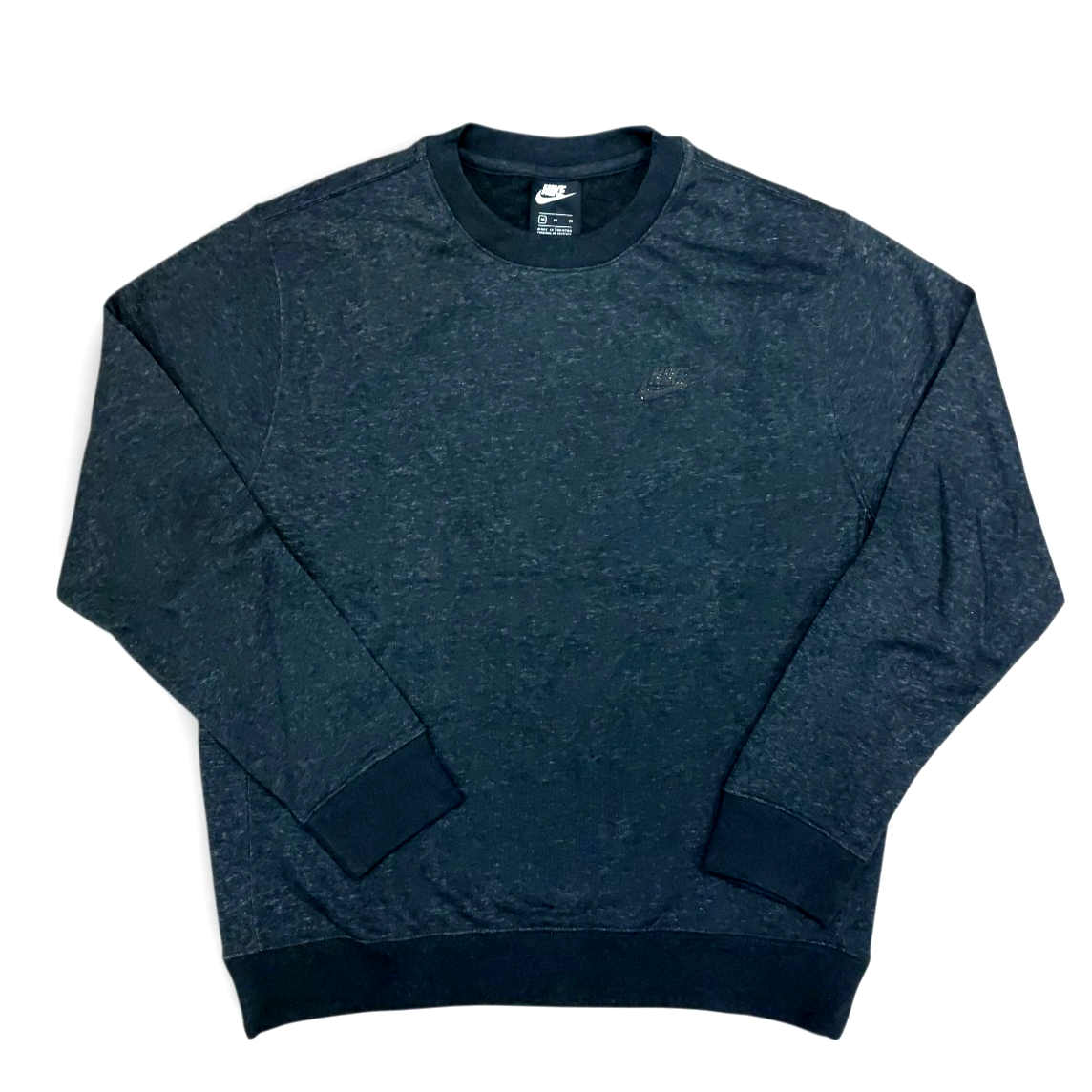 Nike Mens Sweatshirt Medium Black Dark Smoke Grey Heather Fleece Crew Neck