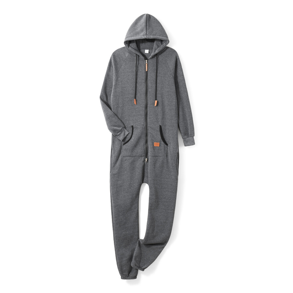 (XL, Dark Grey) Men's Hooded Fleece Lining Jumpsuit, Long Sleeve Full Zipper Overalls with Kangaroo Pockets