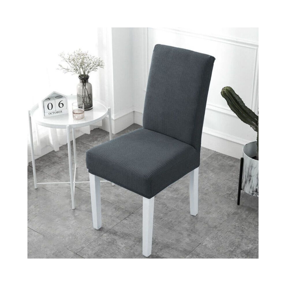 (Dark Grey) Fleece Polar Fabric Chair Cover Elastic Spandex Dining Kitchen With Stretch Back