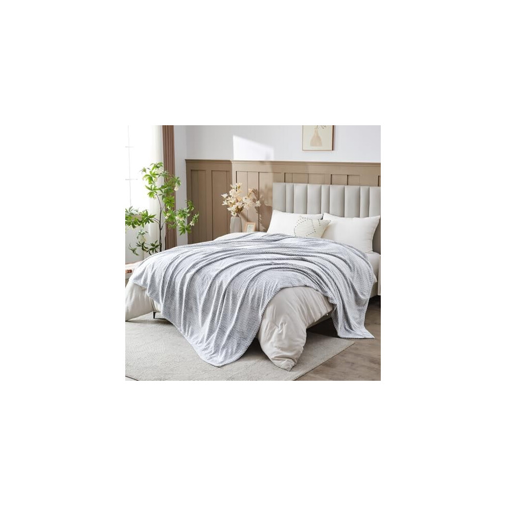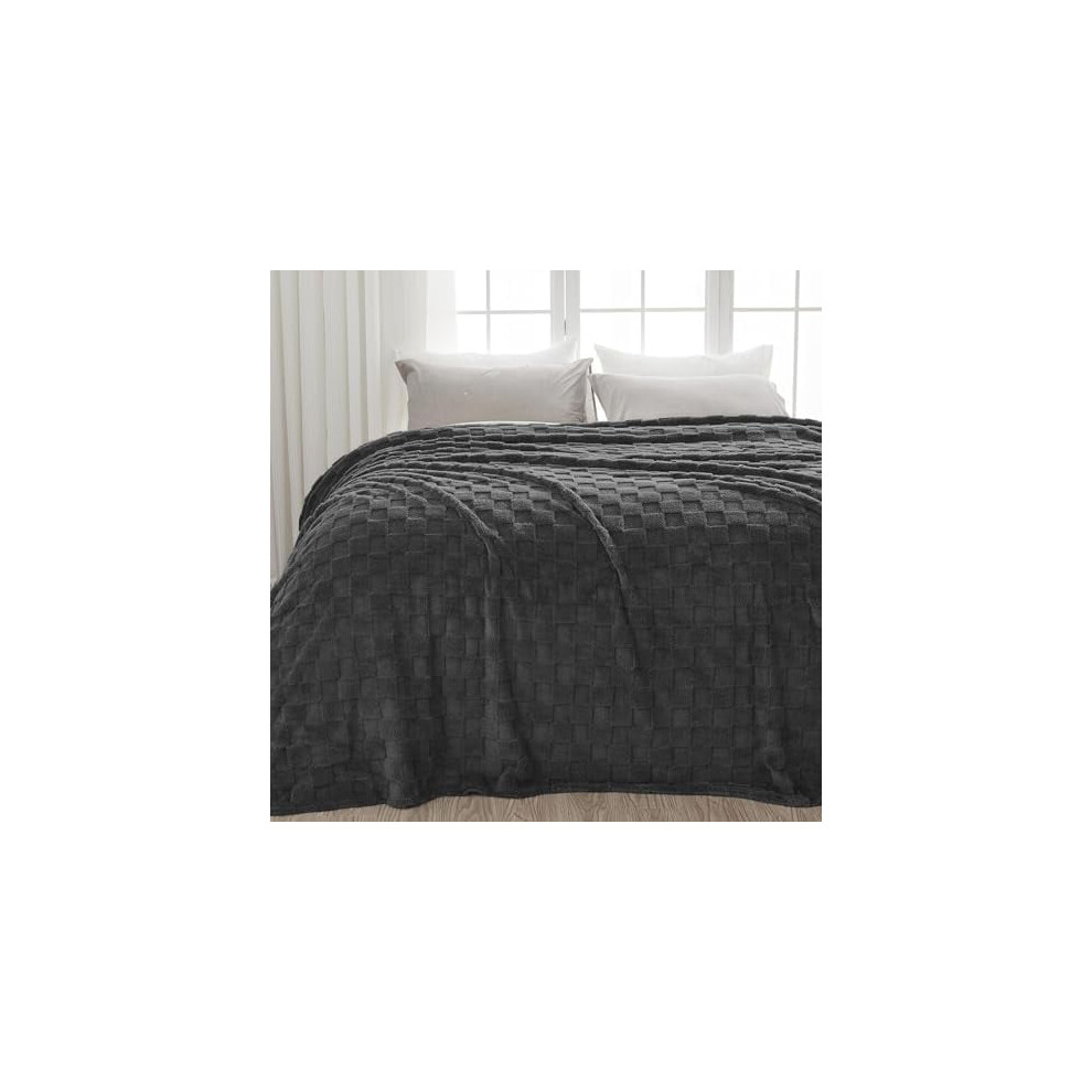Super Soft King Blanket, Dark Grey Silky Flannel Fleece, 3D Checkered, Lightweight All-Season (90"x110")