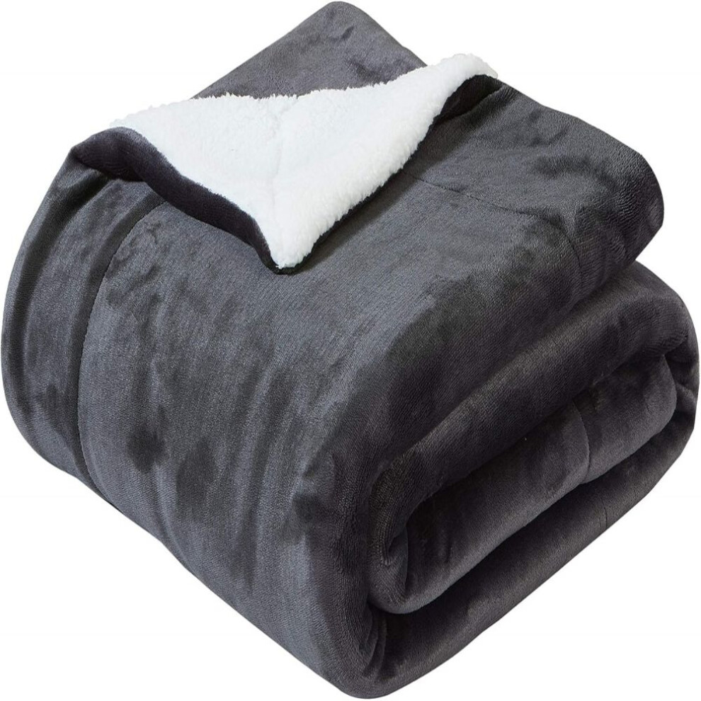 PAVILIA Dark Grey Sherpa Fleece Throw Blanket for Couch Soft Thick Bed Blanket for Sofa Cozy Warm Throw Blanket All Season Fuzzy Plush Winter Blank