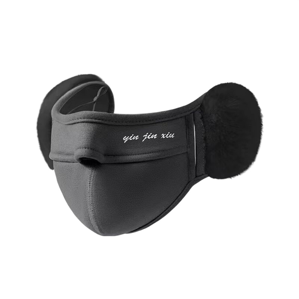 (M, Dark Grey) Women Men Fleece Face Covering with Earmuffs and Ear Loops Winter Warm Face Guard for Cold Weather
