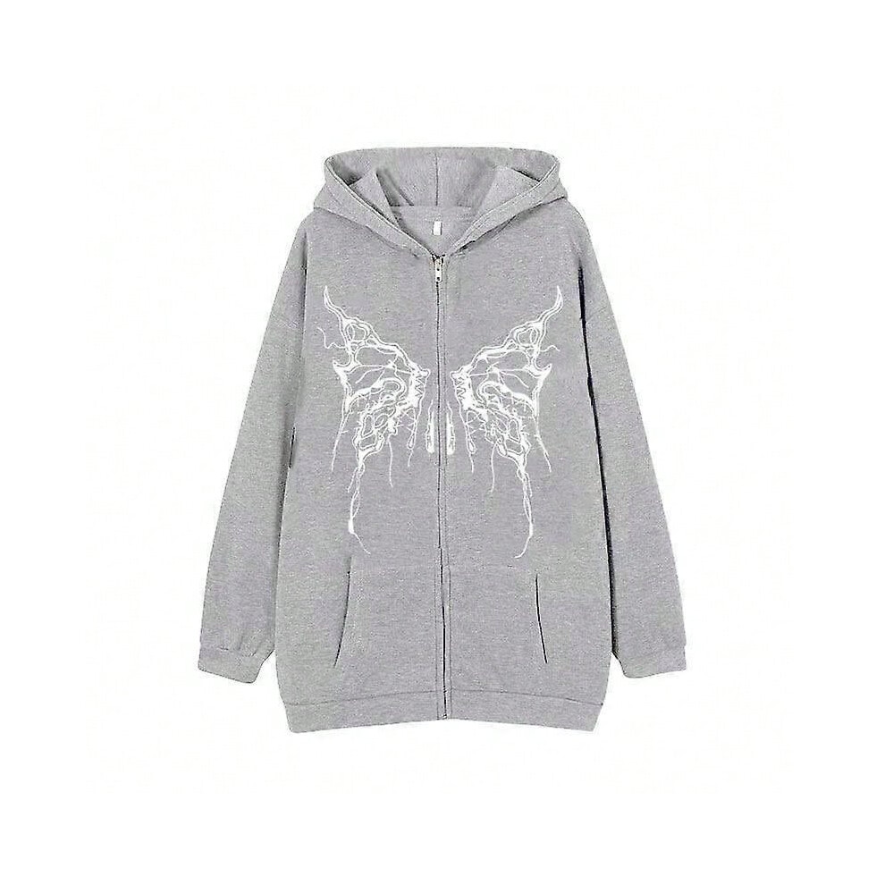 (S, dark grey) Hoodie Gothic Sequin Butterfly Print Hoodie Trendy Casual Zip Cardigan Jacket Sweatshirt Top