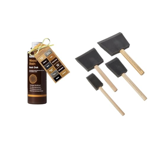 Furniture Clinic Wood Stain (Dark Oak) – Fast Drying, Highly Concentrated, and Easy-to-Apply Wood & Rustins Poly Foam Brushes - Professional Grade Paint Applicators for Smooth Finishes