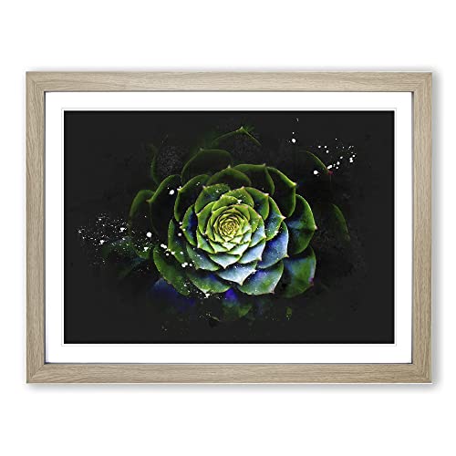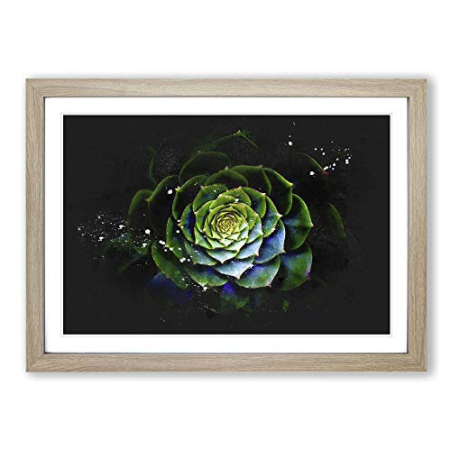 Dark Green Succulent Plant Paint Splash Modern Art Framed Wall Art Print, Ready to Hang Picture for Living Room Bedroom Home Office Décor, Oak A4 (34 x 25 cm)