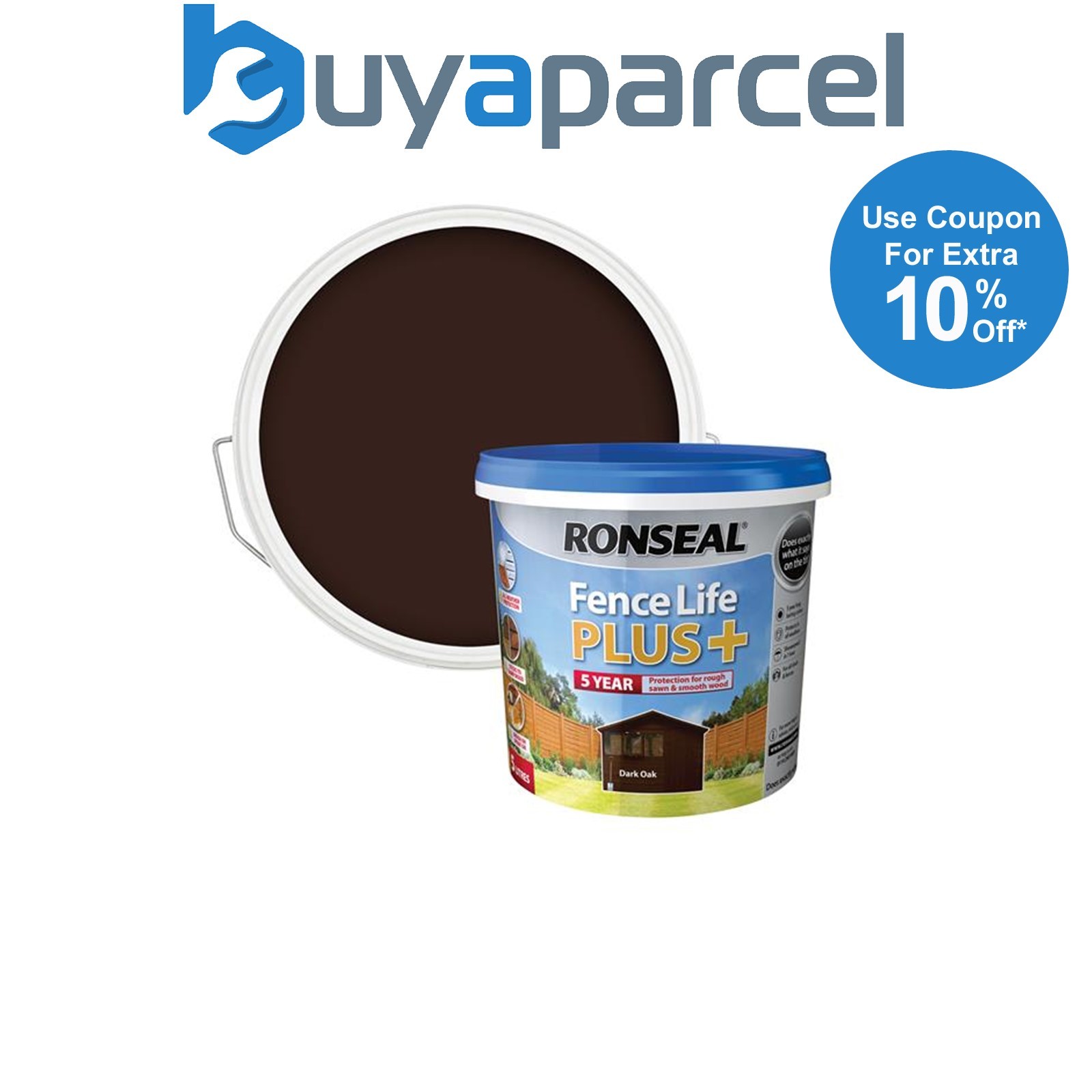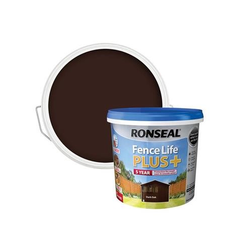 Ronseal Fence Life Plus+ 5 Litre DARK OAK Garden Shed Fence Paint Protect